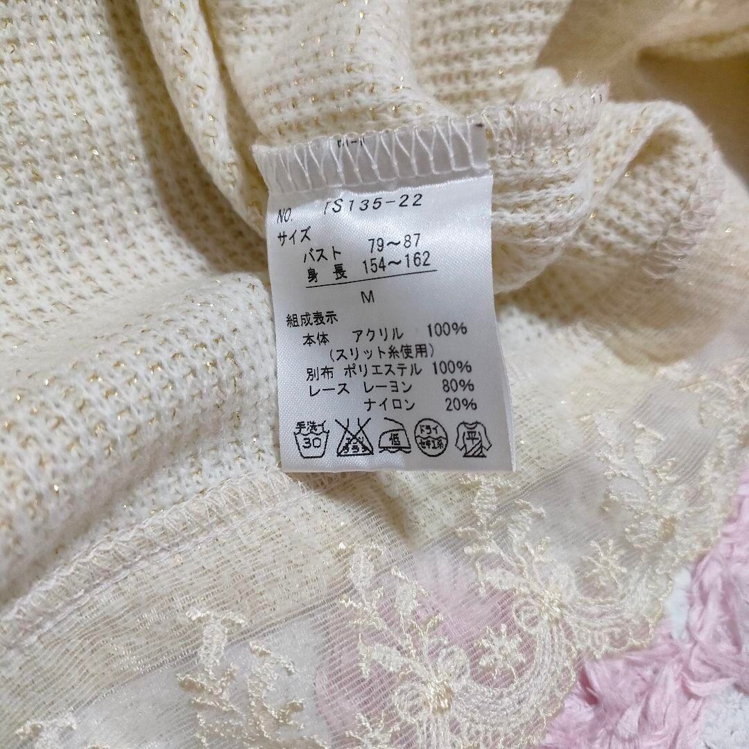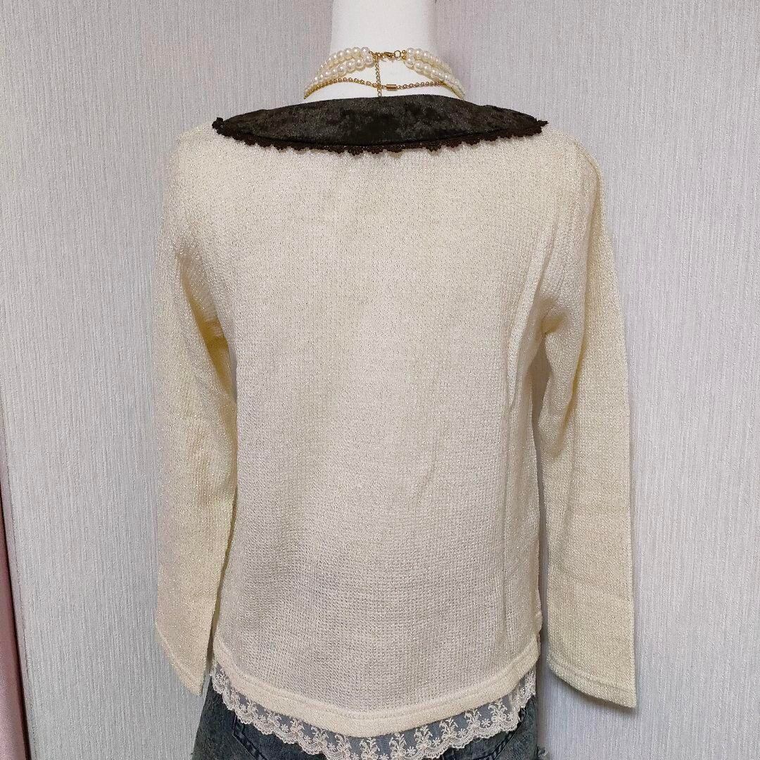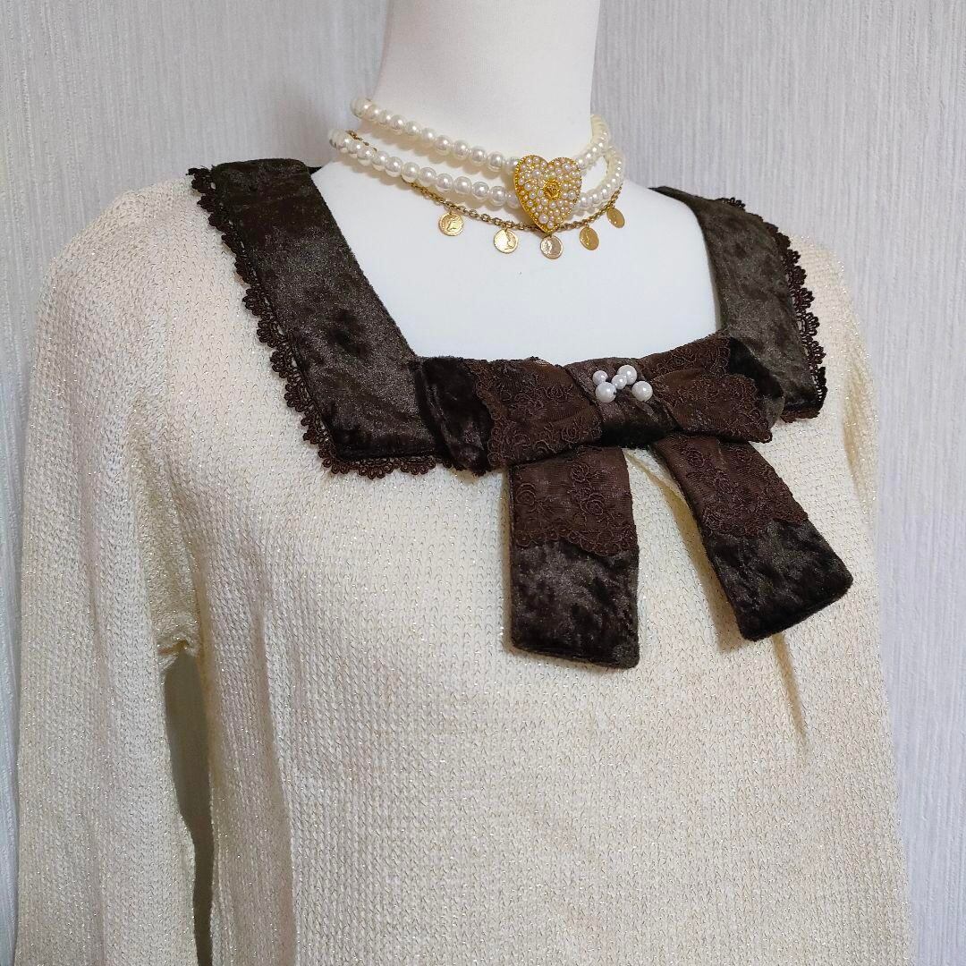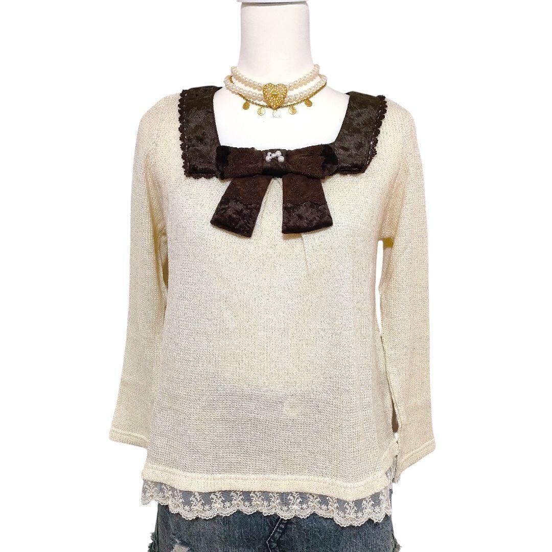 axes リボン付きアイボリー長袖ニットセーター ラメ糸 姫ギャル