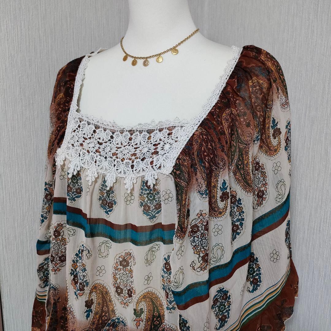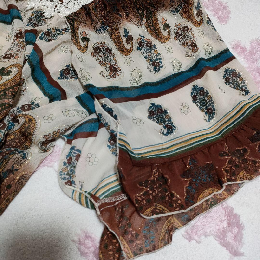 y2k フェアリーグランジ ペイズリー柄 チュニック シフォン フレア袖 レース