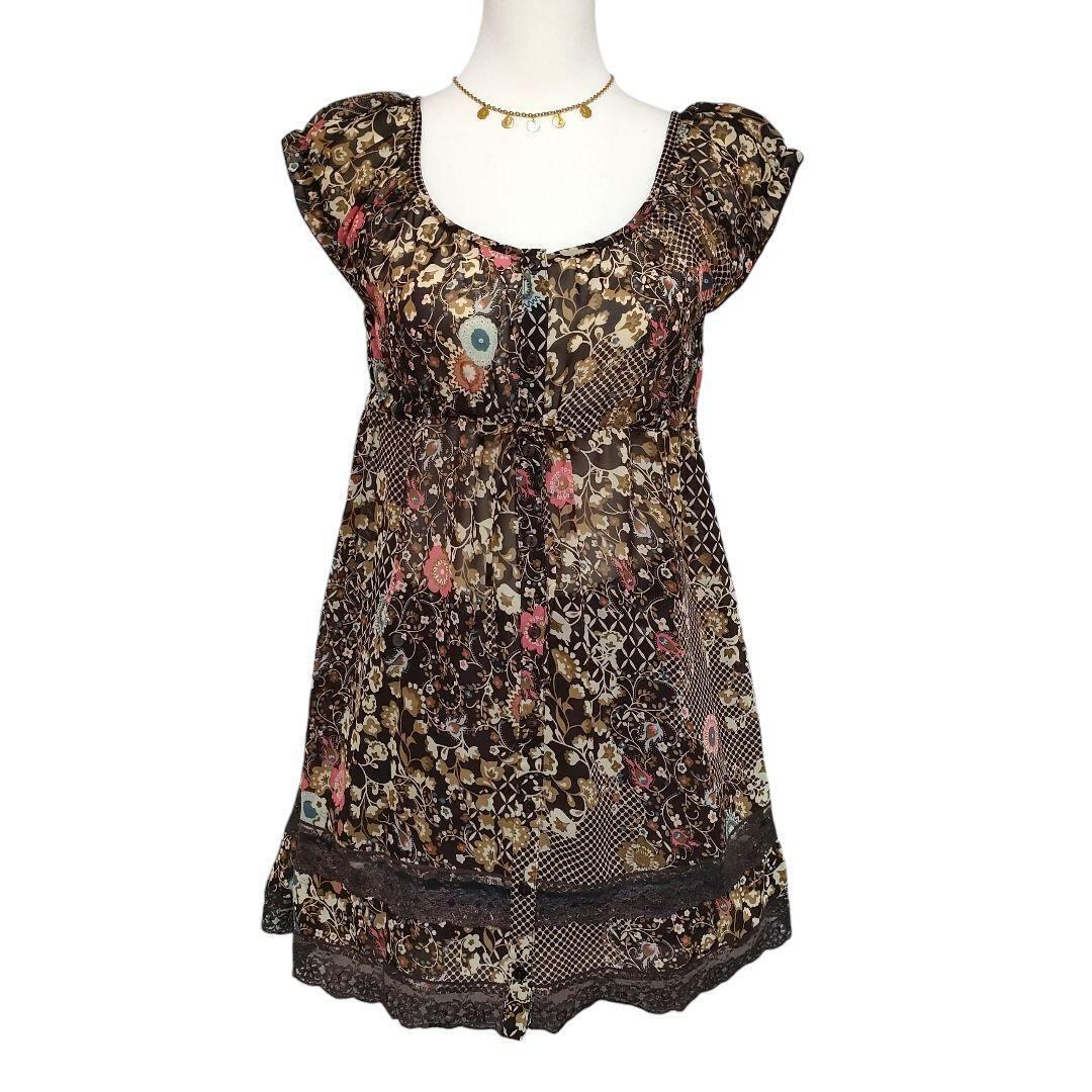 y2k フェアリーグランジ フレンチスリーブ花柄シフォンワンピース レース